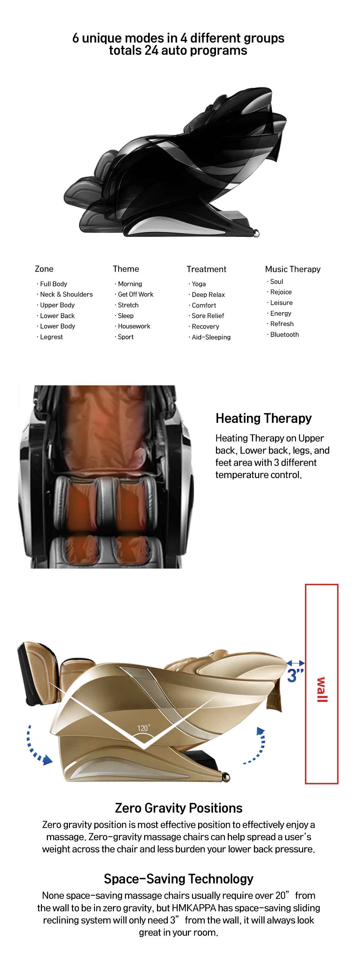 Equipped with 24 automated massage programs, the chair offers a variety of massage techniques, including kneading, tapping, shiatsu, and rolling. Additional features include a tablet-style remote control, voice recognition capabilities, and adjustable heat therapy for the back and feet. The chair's design incorporates space-saving technology, allowing it to recline fully while positioned close to a wall.