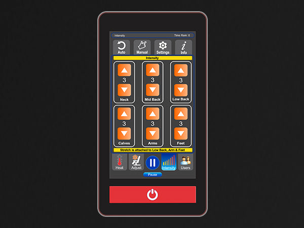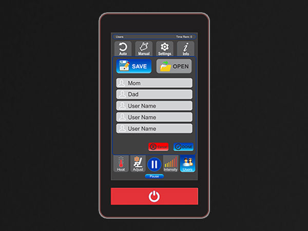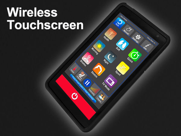 An intuitive, wireless touchscreen controller offers convenient access to massage settings, programs, and personalization features, keeping controls within easy reach.
