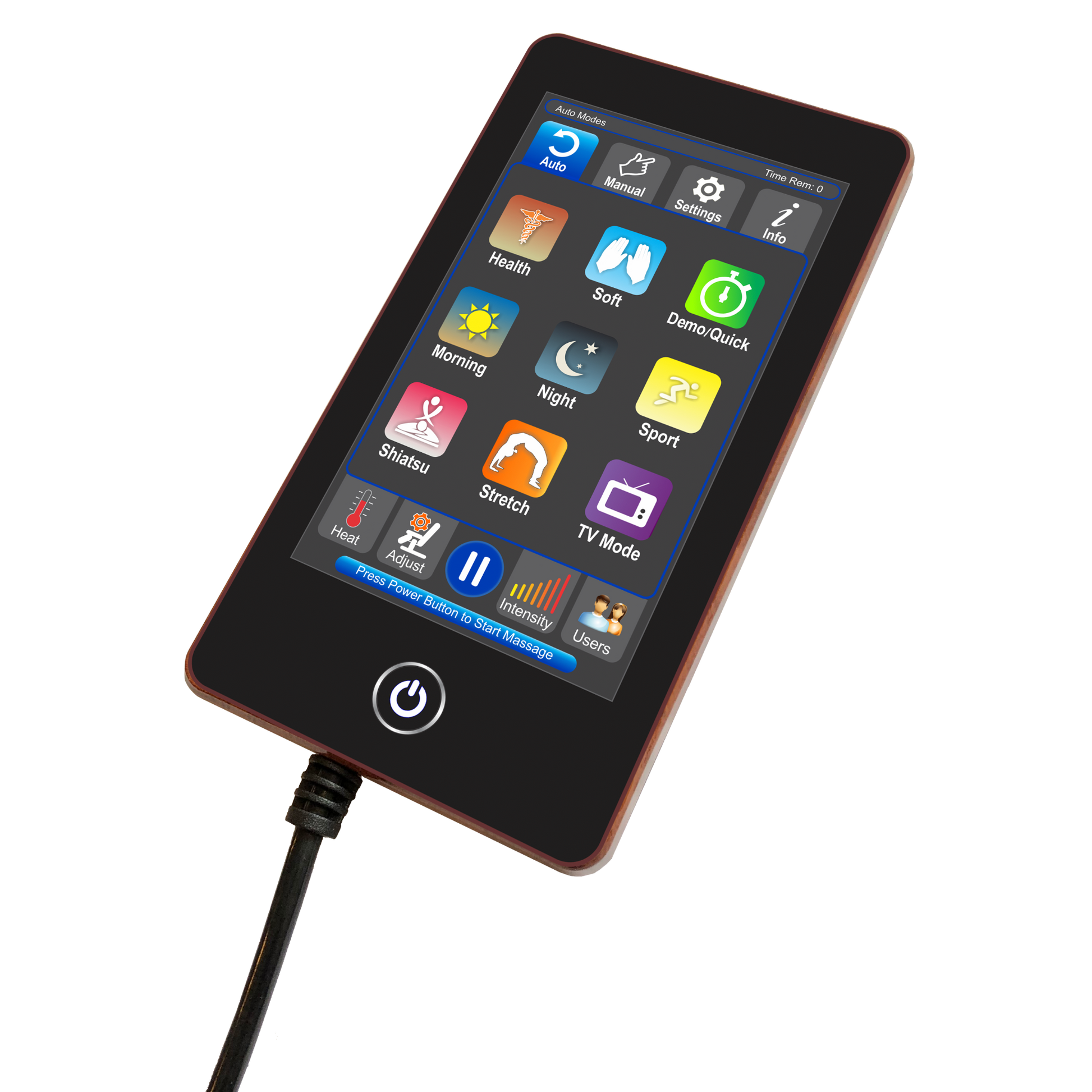 An intuitive, wireless touchscreen controller offers convenient access to massage settings, programs, and personalization features, keeping controls within easy reach.