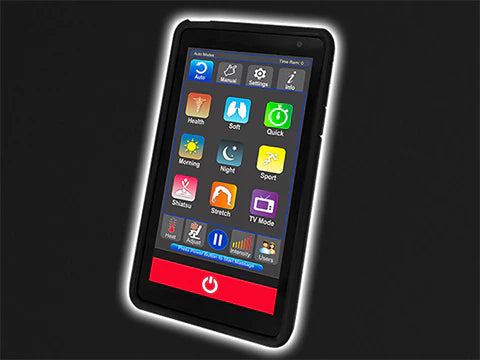 An intuitive, wireless touchscreen controller offers convenient access to massage settings, programs, and personalization features, keeping controls within easy reach.