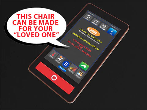 Software Customization (Level I Package) — personalized keypad interface displaying ownership details, such as “This chair is specially made for Dr. Smith,” for a customized user experience.