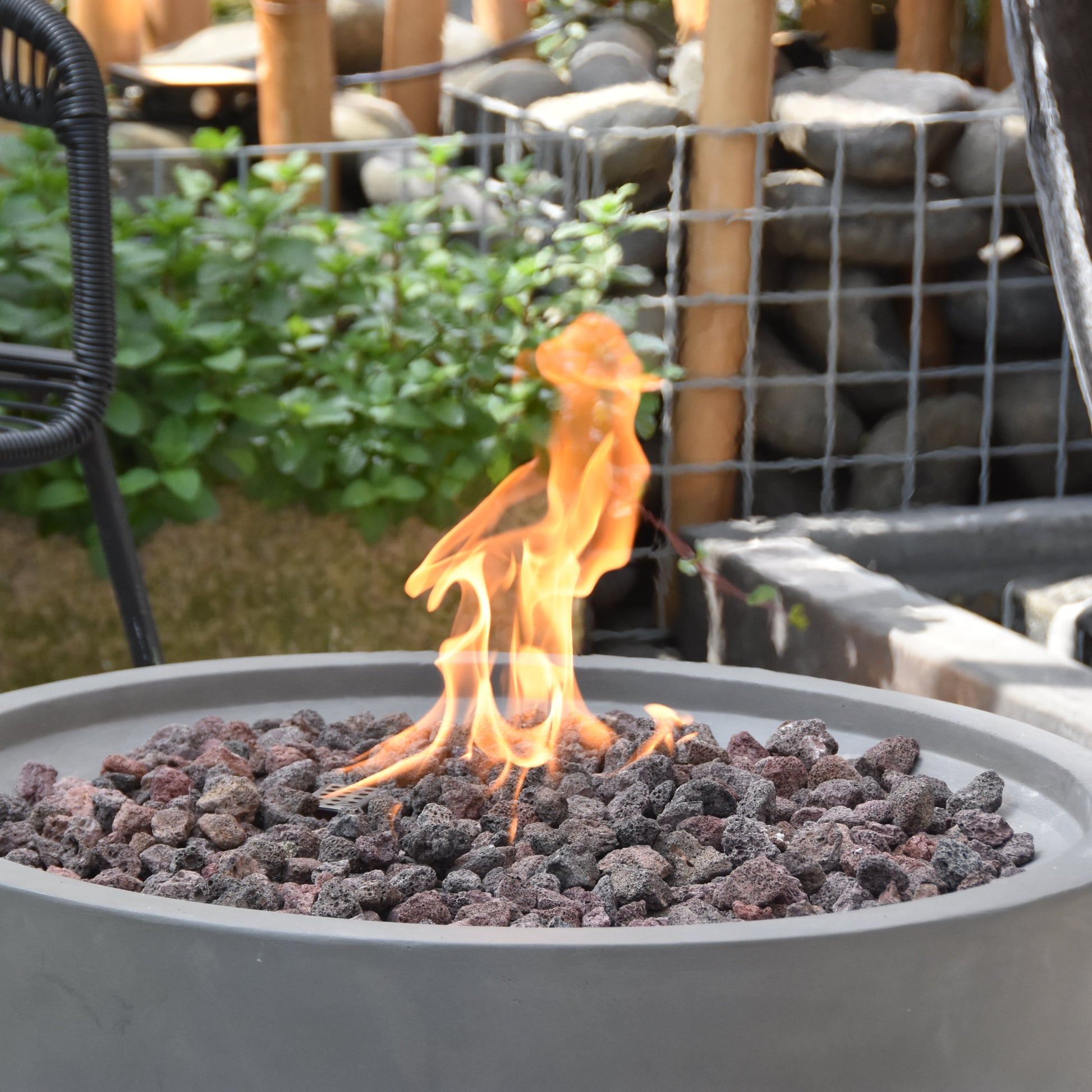 Crafted from glass-fiber reinforced concrete, the Nantucket features a stainless steel burner system with push-button spark ignition and reliable heat output. Certified for safety and supplied with lava rock and a protective PVC cover, it offers a straightforward and dependable fire experience for year-round outdoor enjoyment.